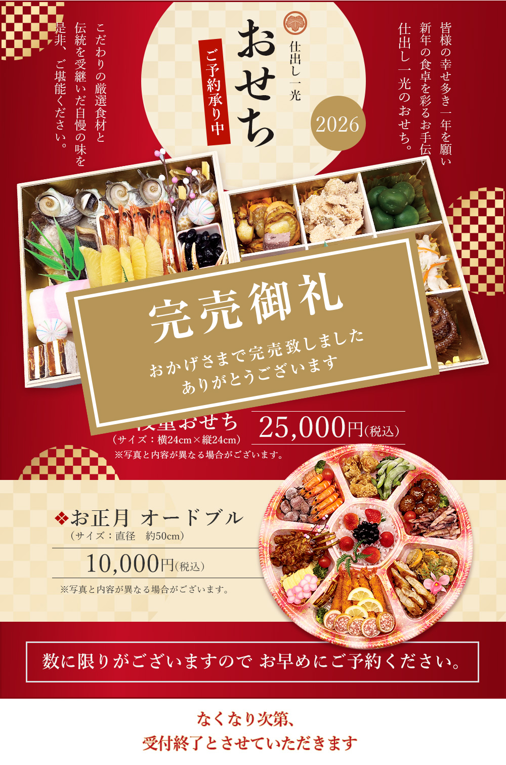 おせち料理とオードブル完売の御礼