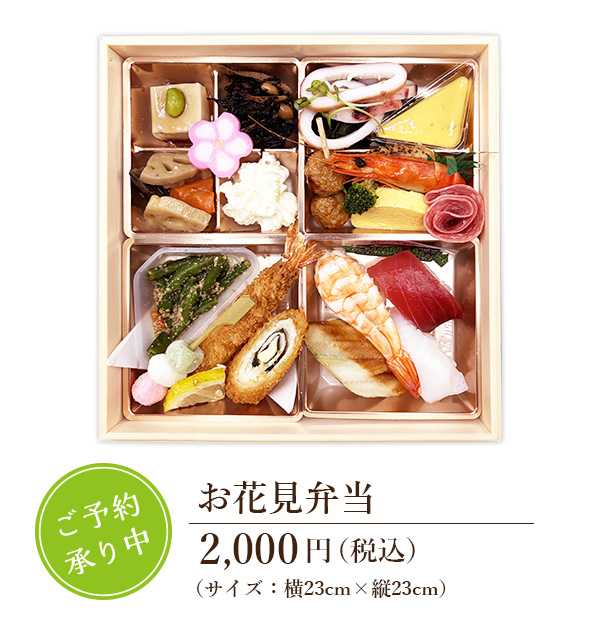 仕出し一光のお花見弁当 ご予約・ご注文承ります 2026年3月3日 shidashi-ikko 毎年ご好評いただいております。 仕出し一光のお花見弁当のご予約・ご注文を承ります。 食卓を彩るお手伝いの想いを込めて 真心いっぱいのお花見弁当をお届けいたします。 配達エリアは、主に江田島市、倉橋、音戸、呉市となります。 遠方のお客様は、お気軽にお問い合わせ下さい。 営業時間 9:00~17:00(毎週水曜休み)